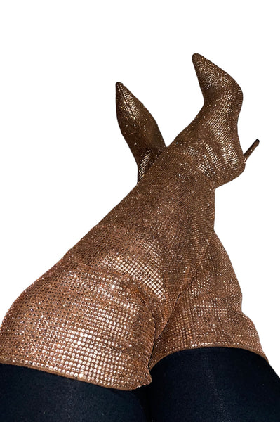 Brown Glitz Boots Thigh High